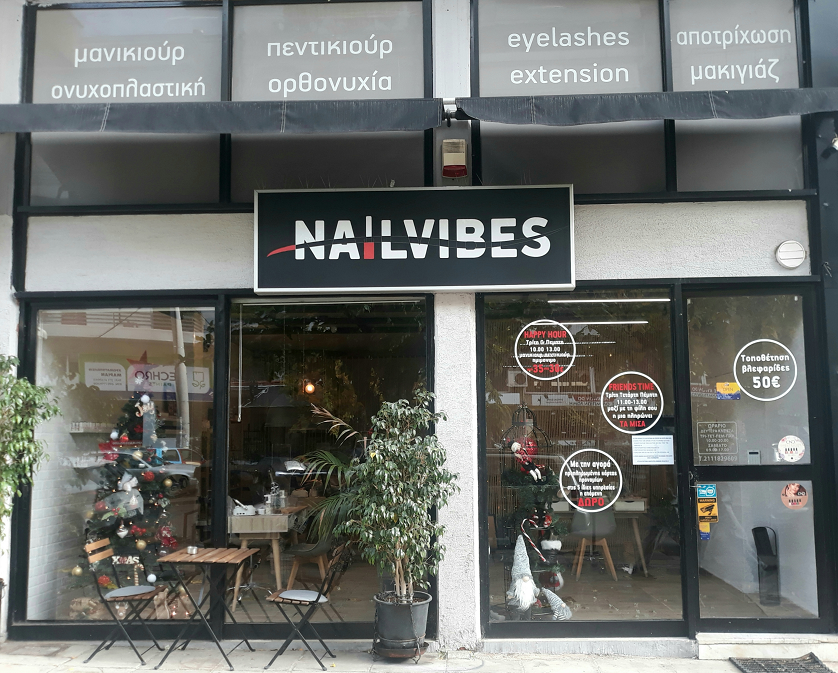 Το nailvibes είναι ένας eco-friendly χώρος με στόχο την παροχή υπηρεσιών ομορφιάς και χαλάρωσης για την γυναίκα και τον άντρα. Ο χώρος μας είναι μοντέρνος, καλαίσθητος και πλήρως εξοπλισμένος με σύγχρονα μηχανήματα και eco-friendly προϊόντα άριστης ποιότητας. Το άρτια εκπαιδευμένο προσωπικό μας είναι πάντα πρόθυμο να σας δώσει συμβουλές για τις τελευταίες τάσεις της μόδας και να σας προτείνει εξατομικευμένες λύσεις για κάθε ανάγκη σας. Με κριτήρια την τήρηση των κανόνων υγιεινής και τον επαγγελματισμό, προσφέρουμε το καλύτερο αποτέλεσμα.Μανικιούρ,πεντικιούρ, τεχνητά νύχια, θεραπευτικό πεντικιουρ, ορθονυχια, αποτριχωσεις σε σώμα κ πρόσωπο,τοποθέτηση βλεφαρίδων,θεραπειες προσώπου και μακιγιάζ...feel the vibes