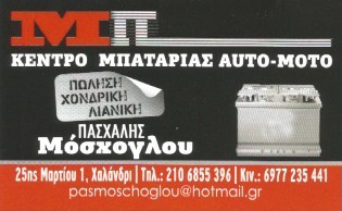 Μπαταρίες αυτοκ/των ΚΕΝΤΡΟ ΜΠΑΤΑΡΙΑΣ ΜΟΣΧΟΓΛΟΥ-ΜΠΑΤΑΡΙΕΣ ΧΑΛΑΝΔΡΙ 25ης Μαρτίου 1 Χαλάνδρι Πληροφορίες Επιχείρησης: 25ης Μαρτίου 1 Χαλάνδρι 15232 2106855396 Κος Μόσχογλου 38.0214194 23.79714 701 Περιγραφή Επιχείρησης: ΚΕΝΤΡΟ ΜΠΑΤΑΡΙΑΣ Auto-Moto ΜΟΣΧΟΓΛΟΥ ΠΑΣΧΑΛΗΣ