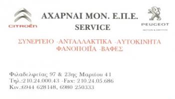 Συνεργεία Αυτοκινήτων-Φανοποιεία ΑΧΑΡΝΑΙ ΜΟΝΟΠΡΟΣΩΠΗ ΕΠΕ-SERVICE CITROEN ΑΧΑΡΝΕΣ-ΣΥΝΕΡΓΕΙΟ PEUGEOT ΑΧΑΡΝΕΣ Φιλαδελφείας 97 Αχαρνές Πληροφορίες Επιχείρησης: Φιλαδελφείας 97 Αχαρνές 13673 2102400043 Κος Δημήτρης 38.0692694 23.739384299999983 1684 Περιγραφή Επιχείρησης: ΑΧΑΡΝΑΙ ΜΟΝΟΠΡΟΣΩΠΗ Ε.Π.Ε Συνεργείο-Ανταλλακτικά-Αυτοκίμνητα Φανοποιϊα-Βαφές