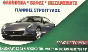 Συνεργεία Αυτοκινήτων-Φανοποιεία ΣΤΡΟΓΓΥΛΟΣ-ΦΑΝΟΠΟΙΕΙΑ ΝΕΟ ΨΥΧΙΚΟ Δημοκρατίας 93 Νέο Ψυχικό Πληροφορίες Επιχείρησης: Δημοκρατίας 93 Νέο Ψυχικό 15451 2106746330 Κος Στρογγυλός Γιάννης 38.0015328 23.7863056 1155 Περιγραφή Επιχείρησης: ΓΙΑΝΝΗΣ ΣΤΡΟΓΓΥΛΟΣ Φανοποιϊα-Βαφές-Πισσαρίσματα