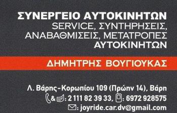Συνεργεία Αυτοκινήτων-Φανοποιεία JOY RIDE-SERVICE ΑΥΤΟΚΙΝΗΤΩΝ ΒΑΡΗ-ΗΛΕΚΤΡΟΛΟΓΕΙΑ ΒΑΡΗ Λεωφόρος Βάρης Βαρκίζης 109 Βάρη Πληροφορίες Επιχείρησης: Λεωφόρος Βάρης Βαρκίζης 109 Βάρη 16672 2111823933 Κος Βουγιούκας 37.8345413 23.7889414 1498 Περιγραφή Επιχείρησης: JOY RIDE Συνεργείο Αυτοκινήτων Ηλεκτρολογείο-Βουλκανιζατέρ