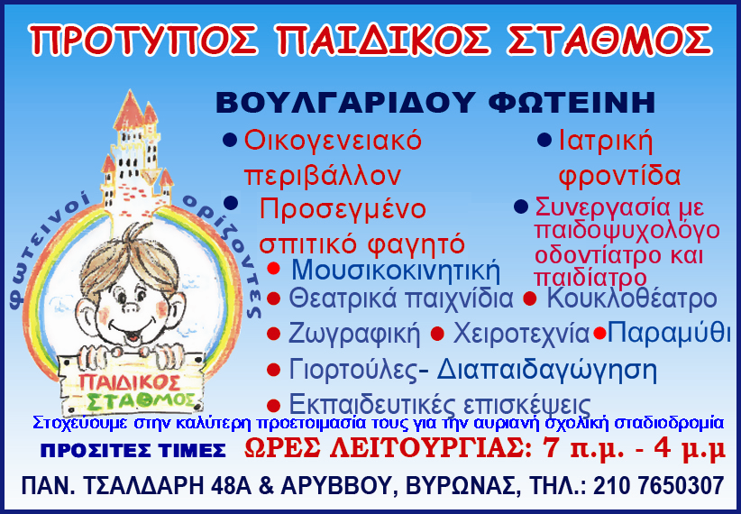 Παιδικοί σταθμοί ΦΩΤΕΙΝΟΙ ΟΡΙΖΟΝΤΕΣ-ΠΑΙΔΙΚΟΙ ΣΤΑΘΜΟΙ ΒΥΡΩΝΑΣ Παναγή Τσαλδάρη 48Α Βύρωνας Πληροφορίες Επιχείρησης: Παναγή Τσαλδάρη 48Α Βύρωνας 16232 2107650307 Κα Βουλγαρίδου 35.2015175 24.1380312 832 Περιγραφή Επιχείρησης: ΦΩΤΕΙΝΟΙ ΟΡΙΖΟΝΤΕΣ Παιδικός Σταθμός