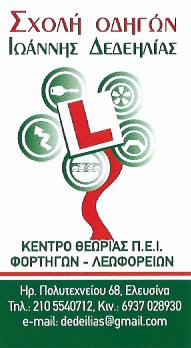 Σχολές οδηγών ΔΕΔΕΗΛΙΑΣ ΙΩΑΝΝΗΣ-ΣΧΟΛΕΣ ΟΔΗΓΩΝ ΕΛΕΥΣΙΝΑ Ηρώων Πολυτεχνείου 68 Ελευσίνα Πληροφορίες Επιχείρησης: Ηρώων Πολυτεχνείου 68 Ελευσίνα 19200 2105540712 6937028930 Κος Γιάννης 38.0448315 23.5356651 769 Περιγραφή Επιχείρησης: ΔΕΔΕΗΛΙΑΣ ΙΩΑΝΝΗΣ Σχολή οδηγών