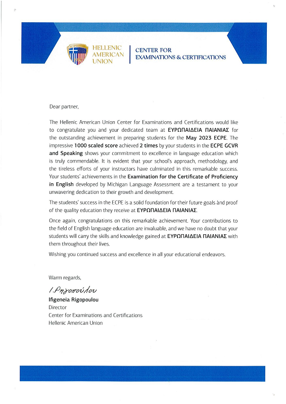 Αναγνώριση της Εκπαιδευτικής μας προσέγγισης από την Ελληνοαμερικάνικη Ένωση (HAU)