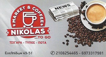 Mini Market MARKET AND COFFEE NIKOLAS-CAFE MINI MARKETS ΚΥΨΕΛΗ Ευελπίδων 49-51 Κυψέλη Πληροφορίες Επιχείρησης: Ευελπίδων 49-51 Κυψέλη 11362 2108254465 Κος Νικόλας-Κα Πολυξένη 37.9961136 23.7403132 739 Περιγραφή Επιχείρησης: MARKET & COFFEE NIKOLAS Cafe-Mini Market Τσιγάρα