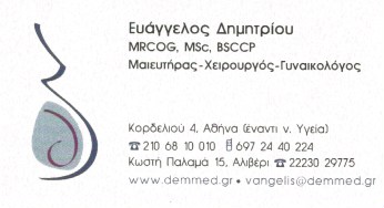 Μαιευτήρες-Γυναικολόγοι ΕΥΑΓΓΕΛΟΣ ΔΗΜΗΤΡΙΟΥ-ΓΥΝΑΙΚΟΛΟΓΟΙ ΧΑΛΑΝΔΡΙ Κορδελιού 4 Χαλάνδρι Πληροφορίες Επιχείρησης: Κορδελιού 4 Χαλάνδρι 15233 2106810010 vangelis@demmed.gr Κος Δημητρίου 35.2015175 24.1380312 590 Περιγραφή Επιχείρησης: ΔΗΜΗΤΡΙΟΥ ΕΥΑΓΓΕΛΟΣ MRCOG, MSc BSCCP Μαιευτήρας Χειρουργός Γυναικολόγος
