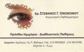 Οφθαλμίατροι ΟΙΚΟΝΟΜΟΥ ΣΤΕΦΑΝΟΣ-ΟΦΘΑΛΜΙΑΤΡΟΙ ΠΑΛΑΙΟ ΦΑΛΗΡΟ Αχιλλέως 16 Παλαιό Φάληρο Πληροφορίες Επιχείρησης: Αχιλλέως 16 Παλαιό Φάληρο 17562 2109818788 6977416676 Κος Οικονόμου 37.9224845 23.7002704 519 Περιγραφή Επιχείρησης: ΟΙΚΟΝΟΜΟΥ ΣΤΕΦΑΝΟΣ MD. PHD Χειρουργός Οφθαλμίατρος