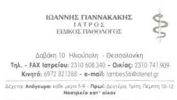 Παθολόγοι ΓΙΑΝΝΑΚΑΚΗΣ ΙΩΑΝΝΗΣ-ΠΑΘΟΛΟΓΟΙ ΗΛΙΟΥΠΟΛΗ ΘΕΣΣΑΛΟΝΙΚΗ Δαβάκη 10 Ηλιούπολη Πληροφορίες Επιχείρησης: Δαβάκη 10 Ηλιούπολη 56431 2310608340 6972821288 Κος Γιαννακάκης 37.943055 23.7470864 1404 Περιγραφή Επιχείρησης: ΓΙΑΝΝΑΚΑΚΗΣ ΙΩΑΝΝΗΣ Ειδικός Παθολόγος