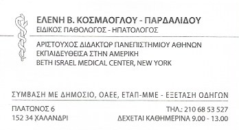 Παθολόγοι ΕΛΕΝΗ ΚΟΣΜΑΟΛΟΥ ΠΑΡΔΑΛΙΔΟΥ-ΠΑΘΟΛΟΓΟΙ ΧΑΛΑΝΔΡΙ Πλάτωνος 6 Χαλάνδρι Πληροφορίες Επιχείρησης: Πλάτωνος 6 Χαλάνδρι 15234 2106853527 6944796088 nepv@otenet.gr 38.0219605 23.8003991 181 Περιγραφή Επιχείρησης: ΕΛΕΝΗ Β. ΚΟΣΜΑΟΛΟΥ-ΠΑΡΔΑΛΙΔΟΥ Ειδικός Παθολόγος-Ηπατολόγος