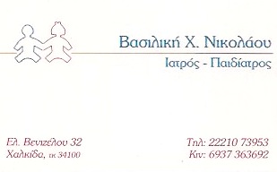 Παιδίατροι ΝΙΚΟΛΑΟΥ ΒΑΣΙΛΙΚΗ-ΠΑΙΔΙΑΤΡΟΙ ΧΑΛΚΙΔΑ Βενιζέλου 32 Χαλκίδα Πληροφορίες Επιχείρησης: Βενιζέλου 32 Χαλκίδα 34100 2221073953 κα Νικολάου Βασιλική 38.4624015 23.594180600000072 1349 Περιγραφή Επιχείρησης: ΝΙΚΟΛΑΟΥ ΒΑΣΙΛΙΚΗ Παιδίατρος