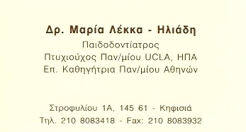Παιδοδοντίατροι ΔΡ ΜΑΡΙΑ ΛΕΚΚΑ ΗΛΙΑΔΗ-ΠΑΙΔΟΔΟΝΤΙΑΤΡΟΙ ΚΗΦΙΣΙΑ Στροφυλίου 1 Κηφισιά Πληροφορίες Επιχείρησης: Στροφυλίου 1 Κηφισιά 14561 2108083418 Κα Μαρία Λέκκα 38.0755189 23.8081552 830 Περιγραφή Επιχείρησης: ΔΡ ΜΑΡΙΑ ΛΕΚΚΑ ΗΛΙΑΔΗ Παιδοδοντίατρος