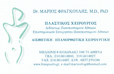 Πλαστικοί Χειρουργοί ΜΑΡΙΟΣ ΦΡΑΓΚΟΥΛΗΣ-ΠΛΑΣΤΙΚΟΙ ΧΕΙΡΟΥΡΓΟΙ ΚΟΛΩΝΑΚΙ Μηλιώνη 8 Κολωνάκι Πληροφορίες Επιχείρησης: Μηλιώνη 8 Κολωνάκι 10673 2103614893 6977270190 Κος Μάριος Φραγκούλης 37.9774546 23.7396057 973 Περιγραφή Επιχείρησης: ΜΑΡΙΟΣ ΦΡΑΓΚΟΥΛΗΣ Πλαστικός Χειρουργός