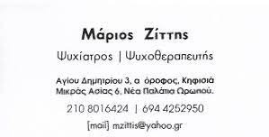 Ψυχίατροι ΜΑΡΙΟΣ ΖΙΤΤΗΣ-ΨΥΧΙΑΤΡΟΣ ΚΗΦΙΣΙΑ Αγίου Δημητρίου 3 Κηφισιά Πληροφορίες Επιχείρησης: Αγίου Δημητρίου 3 Κηφισιά 14562 2108016424 6944252950 Κος Ζίττης 35.2015175 24.1380312 588 Περιγραφή Επιχείρησης: ΖΙΤΤΗΣ ΜΑΡΙΟΣ Ψυχίατρος-Ψυχοθεραπευτής