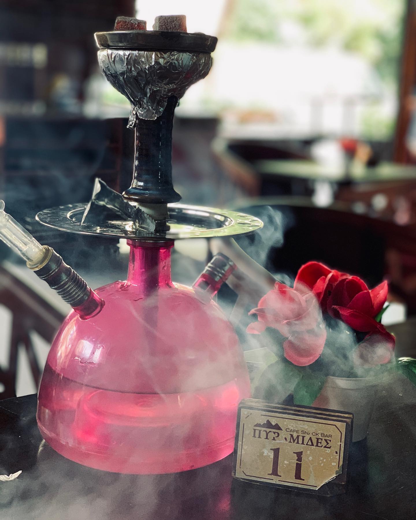 Στις "Πυραμίδες" δε θα βρείτε μόνο μια μεγάλη ποικιλία από αρωματικούς καπνούς ναργιλέ, αλλά και πληθώρα παραδοσιακών, αραβικών εδεσμάτων και ροφημάτων, ώστε να αποκτήσετε μια ολοκληρωμένη εμπειρία αυτών που έχει να σας προσφέρει η Αίγυπτος.