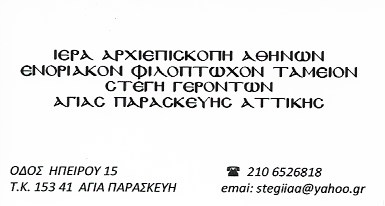 Οίκοι Ευγηρίας ΣΤΕΓΗ ΓΕΡΟΝΤΩΝ ΑΓΙΑΣ ΠΑΡΑΣΚΕΥΗΣ-ΟΙΚΟΙ ΕΥΓΗΡΙΑΣ ΑΓΙΑ ΠΑΡΑΣΚΕΥΗ Ηπείρου 25 Αγία Παρασκευή Πληροφορίες Επιχείρησης: Ηπείρου 25 Αγία Παρασκευή 15341 2106526818 Κα Παπαδοπούλου Ιωάννα 38.0094108 23.8139981 352 Περιγραφή Επιχείρησης: ΣΤΕΓΗ ΓΕΡΟΝΤΩΝ ΑΓΙΑΣ ΠΑΡΑΣΚΕΥΗ Μονάδα Φροντίδας Ηλικιωμένων