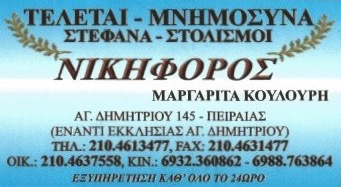 Γραφεία τελετών ΝΙΚΗΦΟΡΟΣ-ΓΡΑΦΕΙΑ ΤΕΛΕΤΩΝ ΠΕΙΡΑΙΑΣ Αγίου Δημητρίου 145 Πειραιάς Πληροφορίες Επιχείρησης: Αγίου Δημητρίου 145 Πειραιάς 18545 2104613477 Κα Κουλούρη Μαργαρίτα 37.9603668 23.6350068 811 Περιγραφή Επιχείρησης: ΤΕΛΕΤΑΙ-ΜΝΗΜΟΣΥΝΑ "ΝΙΚΗΦΟΡΟΣ"