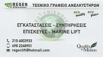 Ανελκυστήρες REGEN ELEVATOR-ΤΕΧΝΙΚΑ ΓΡΑΦΕΙΑ ΑΝΕΛΚΥΣΤΗΡΩΝ ΚΕΡΑΤΣΙΝΙ-ΕΓΚΑΤΑΣΤΑΣΕΙΣ ΑΝΕΛΚΥΣΤΗΡΩΝ ΚΕΡΑΤΣΙΝΙ Κενταύρων 30 Κερατσίνι Πληροφορίες Επιχείρησης: Κενταύρων 30 Κερατσίνι 18757 2104003933 6982248901 Κος Δασκαλάκης 620 Περιγραφή Επιχείρησης: REGEN ELEVATOR Τεχνικό Γραφείο Ανελκυστήρων Εγκατάσταση-Service