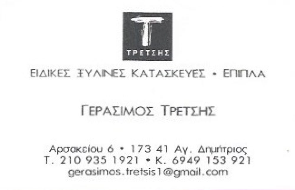 Ξύ/να δάπεδα-Ξυλ.κατασ/υές ΤΡΕΤΣΗΣ ΓΕΡΑΣΙΜΟΣ-ΞΥΛΙΝΕΣ ΚΑΤΑΣΚΕΥΕΣ ΑΓΙΟΣ ΔΗΜΗΤΡΙΟΣ Αρσακείου 6 Άγιος Δημήτριος Πληροφορίες Επιχείρησης: Αρσακείου 6 Άγιος Δημήτριος 17341 2109351921 6949153921 Κος Τρέτσης 35.2015175 24.1380312 516 Περιγραφή Επιχείρησης: ΞΥΛΙΝΕΣ ΚΑΤΑΣΚΕΥΕΣ ΤΡΕΤΣΗΣ ΓΕΡΑΣΙΜΟΣ