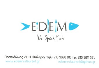 Ψαροταβέρνες-Ουζερί EDEM-ΨΑΡΟΤΑΒΕΡΝΕΣ ΠΑΛΑΙΟ ΦΑΛΗΡΟ Λεωφόρος Ποσειδώνος 74 Παλαιό Φάληρο Πληροφορίες Επιχείρησης: Λεωφόρος Ποσειδώνος 74 Παλαιό Φάληρο 17562 2109820015 Κα Σάντυ-Κα Λιακοπούλου Σοφία 550 Περιγραφή Επιχείρησης: EDEM Ψαροταβέρνα