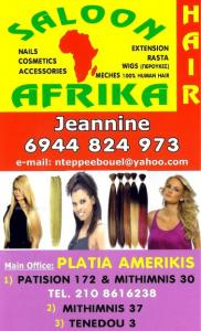AFRICA SALON Extensions-Περούκες-Είδη Κομμωτηρίου http://www.africa-hair.gr/ Βρείτε μας στο https://www.facebook.com/africahair?fref=ts Μεγάλη ποικιλία σε τουπέ και ποσστίς μαλλιών. Πρόσθετα κομμάτια που δίνουν στυλ και χτένισμα στα μαλλιά σας χωρίς να διακρίνονται! Καταστήματα 1.Μηθύμνης 37, Αθήνα 2.Τένεδου 3,Αθήνα !----> !----> !----> !----> !---->