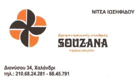 Μακριά από την φασαρία και την κίνηση μέσα σε ένα καταπράσινο περιβάλλον στο χαλάνδρι, βρίσκεται ο βρεφονηπιακός σταθμός ΣΟΥΖΑΝΑ. Το κτίριο μας, άνετο, ηλιόλουστο με μεγάλο κήπο, παρέχει ασφάλεια και ποιότητα. Οι 5 διδακτικές του αίθουσες, τα υπνοδωμάτια, τα 3 μπάνια, η τραπεζαρία καθώς και το εργαστήριο, είναι πλήρως εξοπλισμένα και διαμορφωμένα με τέτοιο τρόπο ώστε τα παιδιά να νοιώθουν την αγάπη, τη ζεστασιά και τη θαλπωρή του οικογενειακού τους περιβάλλοντος. Τα προγράμματα πραγματοποιούνται από έμπειρους νηπιαγωγούς-νηπιοβρεφοκόμους, δασκάλα ρυθμικής και μουσικής, ξένων γλωσσών, δασκάλους τέννις και κολύμβησης, ψυχολόγο, παιδίατρο, λογοπεδικό, παιδοδοντίατρο. Η μεταφορά των παιδιών γίνεται με τα σχολικά λεωφορεία μας που τηρούν όλες τις προδιαγραφές για ασφαλή μεταφορά. Παρέχεται ασφαλιστική κάλυψη των παιδιών. Ο σταθμός μας λειτουργεί καθημερινά από τις 06:30 έως τις 17:30 ΤΜΗΜΑΤΑ: Α' Βρεφικό (3 μηνών έως 18 μηνών) Β'Βρεφικό (1,5 ετών έως 2,5 ετών) Προ-προνηπιακό (2,5 ετών έως 3,5 ετών) Προνηπιακό (3,5 ετών έως 4,5 ετών) Νηπιακό (4,5 ετών έως 6 ετών)