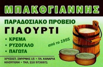 ΜΠΑΚΟΓΙΑΝΝΗΣ Γαλακτοπωλείο από το 1955 Παραδοσιακό πρόβειο γιαούρτι Κρέμα-Ρυζόγαλο Παγωτό !----> !----> !----> !---->-->