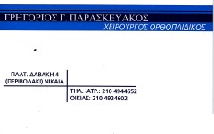 Γρηγόριος Γ.Παρασκευάκος Χειρουργός Ορθοπαιδικός *Ωράριο 09.00-13.00 εκτός Τετάρτης & απογεύματα 17.30-21.00