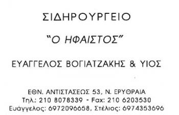 ΣΙΔΗΡΟΥΡΓΕΙΟ "Ο ΗΦΑΙΣΤΟΣ" ΕΥΑΓΓΕΛΟΣ ΒΟΓΙΑΤΖΑΚΗΣ & ΥΙΟΣ